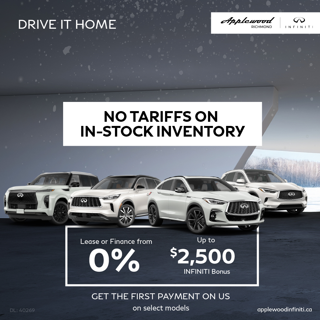 Up to $1,000 first payment on QX50 and up to $1,250 on QX55 + Lease at 0% up to 60 months