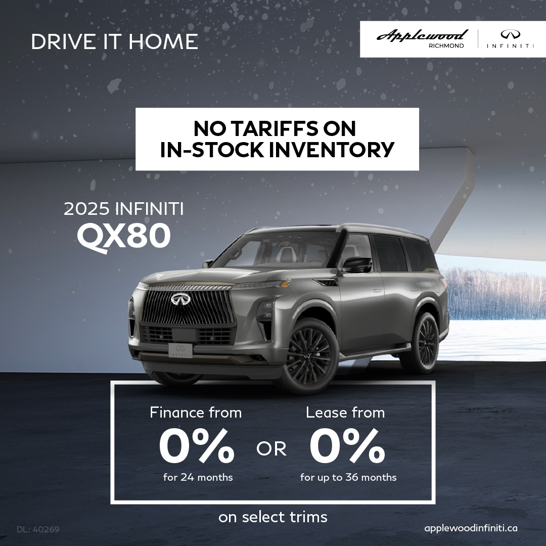 Offers available until midnight on December 1, 2025. Offers May change without notice. Certain conditions May apply. Retailer May lease for less. Retailer order/trade May be necessary (but May not be available in all cases). See your nearest INFINITI retailer for complete details.